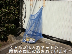 ★ アルミ缶は団地内各所に設置してある“アルミ缶入れ”の袋(ネット)に入れてください。アルミ缶入れにはアルミ缶のみ入れてください。